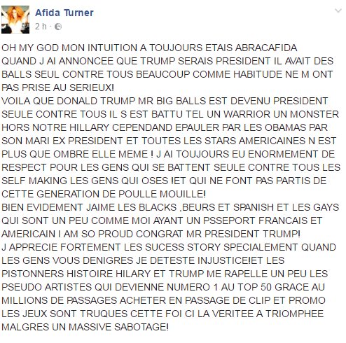 Ce que pense de l'élection de trump...Afida Turner (Loft Story 2)