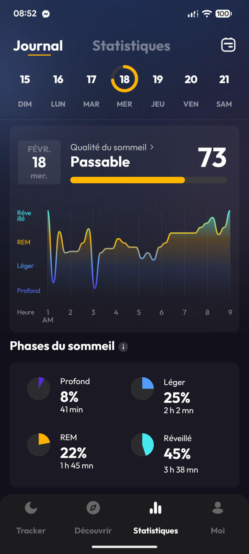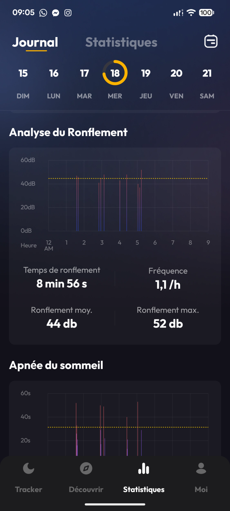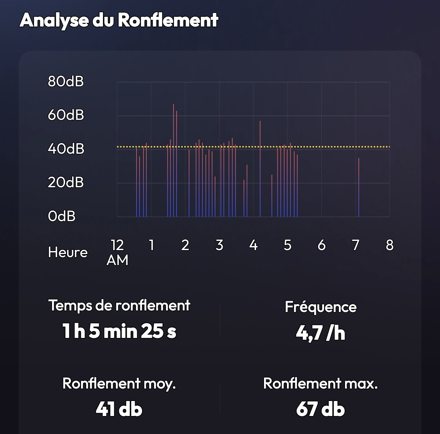 Haha, tu n'as ronflé que 8 minutes mais avec un pic à 52 db 😂